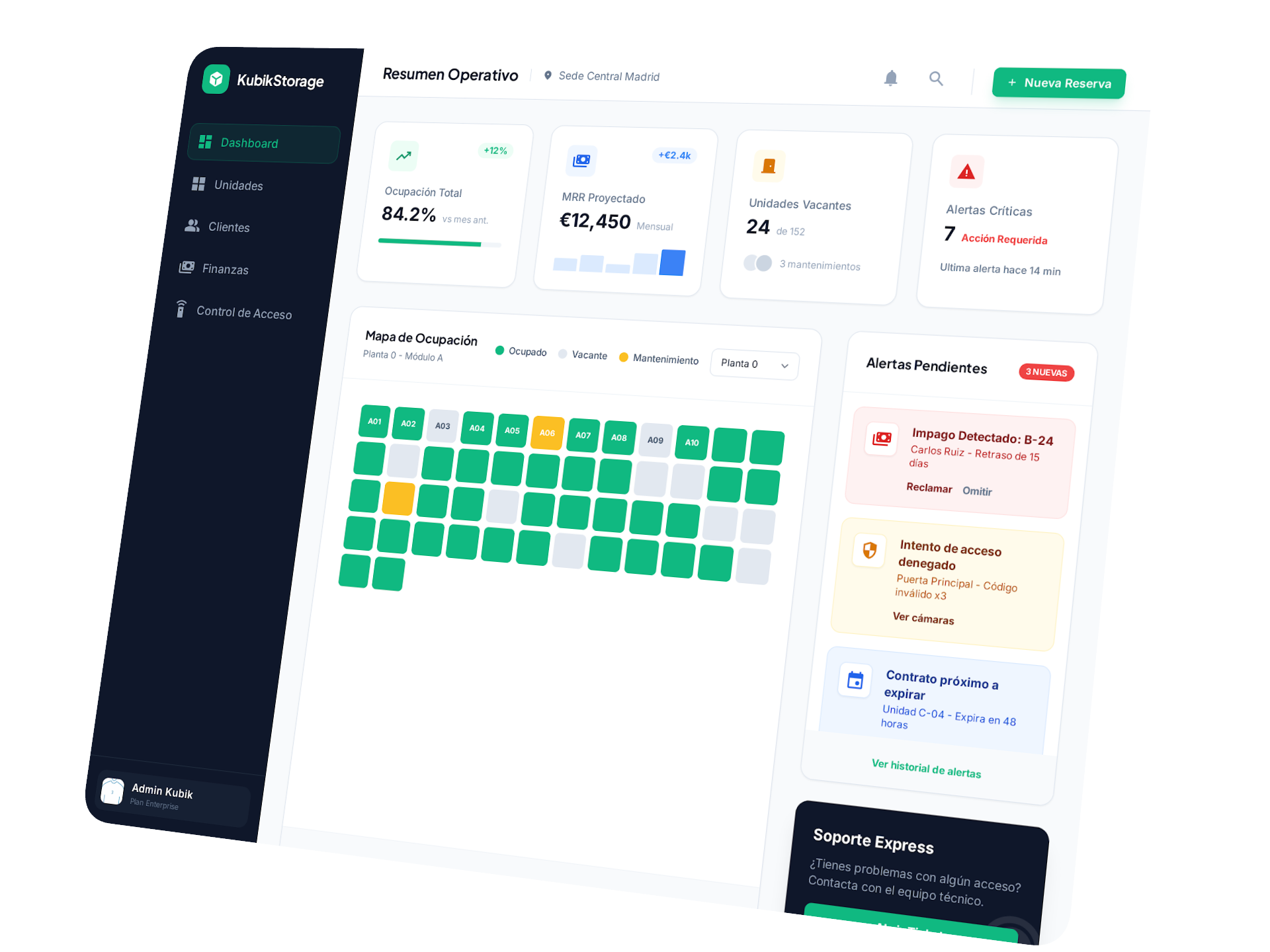 Nota: KubikStorage está optimizado para uso profesional. No es para gestión de un solo trastero personal.